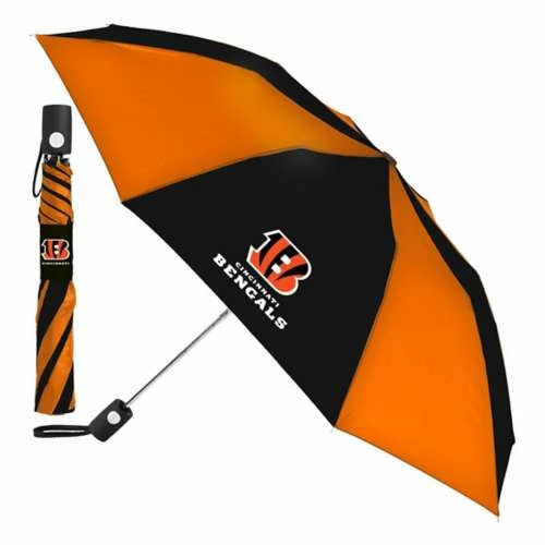 Stay in the shade as you cheer on your team with the Wincraft Cincinnati Bengals Auto Folding Umbrella. Whether you’re tailgating or want some sun protection, you’ll be able to show off your Cincinnati Bengals pride while you’re outside. Thanks to the bright Cincinnati Bengals color and logo, everyone will know who you root for. Get ready for game time and stay out of the sun or rain with the Wincraft Cincinnati Bengals Auto Folding Umbrella.